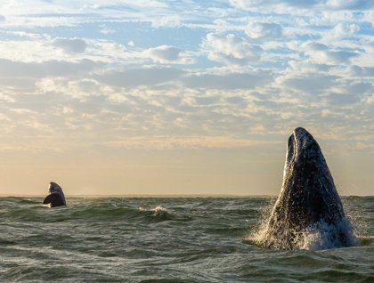 After a relaxing night at anchor on the National Geographic Sea Bird at the northern end of Magdalena Island, in the boca (the mouth) of the bay, eager whale watchers rose before the first golden rays of light illuminated the blows of the California gray whales.