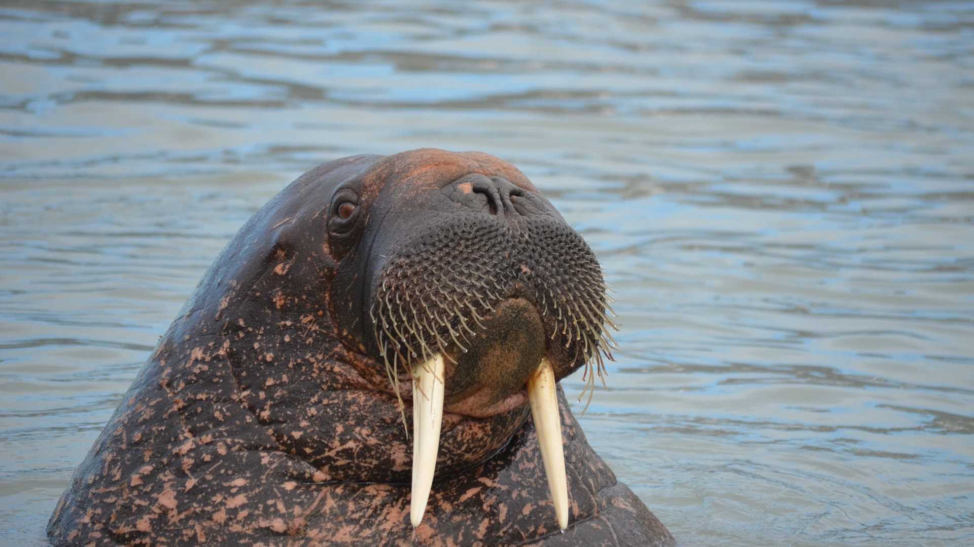 Magdalenefjord and Trinity Harbour are not only astonishing in terms of the landscape and the history, but also for the nature. Not far from Trinity Harbour we found the wrinkled brown and pink hides of two dozen walruses lazing on the shoreline. Immediately distinguishable by their long white tusks, grizzly whiskers, and rotund blubbery bodies this herd of walrus seemed entirely unperturbed by our appearance. Indeed about six of them even came over to the Zodiacs to check us out!