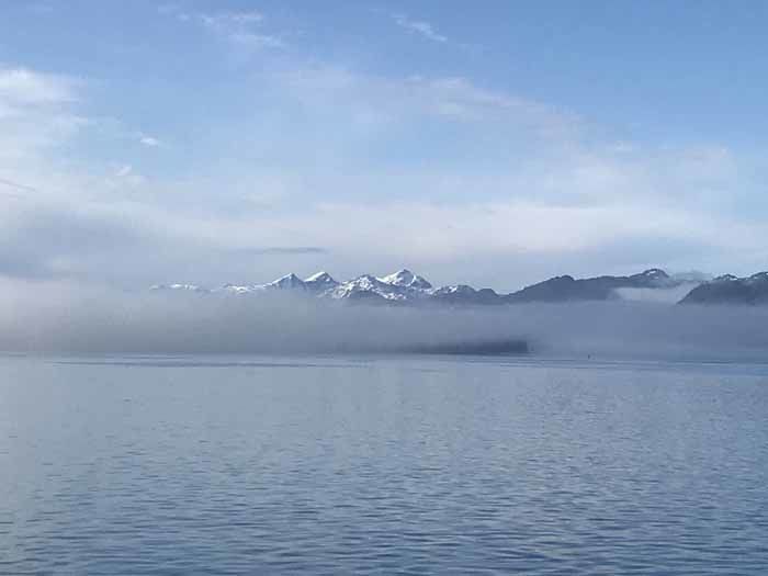 Our last morning in the wilderness brought us to the protected inlet of Ushk Bay. A humpback whale repeatedly breached, slamming its pectoral flipper on the surface of the water before its tail smashed the sea’s surface. Over and over, this extremely active whale leaped and twirled as we delighted in its performance. The Zodiacs launched. Once again, we bundled into our rain gear and headed to shore for forest walks and strolls along a salmon stream. A wide meadow with braided streams ran through the thick forest. Random, rusting iron equipment from a long-forgotten enterprise was half buried along the pebbled shoreline. We crossed small, rushing streams. The stream on the far side of the meadow shivered with the fins of pink and chum salmon. We watched these creatures, driven beyond self-protection, as they completed their life cycles by spawning. We saw females turn on their sides and in a spasm of enterprise, writhe their tails along the pebbled bottom of the stream to make a perfect indentation for their precious eggs. Attendant males stayed within inches of busy females. The walking path was heavy with the bodies of salmon. Life and death in the Alaskan wilds surrounded us. We returned to the warmth of our ship and traversed the narrow passages toward Sitka. Mist hugged the trees as we saw night descend on our final evening in Southeast Alaska. Photo caption and photographer: Humpback whale. Photo by Rich Kirchner
