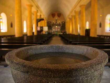 The largest of the islands within the lagoon is Mangareva, the site of the village of Rikitea, where we landed in the morning. As so often happens on the warm and welcoming islands of Polynesia, we were greeted with the exciting rhythms of drums and a performance by a troupe of athletic dancers. Some of us were off immediately for the very demanding hike up Mt. Duff, the high point of the island. Others chose more leisurely strolls, up the hills close to town or just along the shady main street to St. Michael’s Cathedral. The dramatic façade and cool, spacious interior of this beautiful building belie the cruelty and cultural destruction of its construction, but nonetheless we found it to be a lovely place with excellent opportunities for photography.