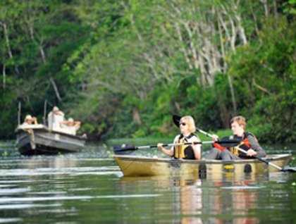 Our ship, Delfin II, repositioned to a delta connecting a black water river. Here we embarked upstream for a kayak ride along the riverside going gently downstream. Nauta Caño is a softly undulated tributary bluntly headed from north to south as the setting sun slowly casted a shadow on one side. Impressive contrast from a fun sunny day. Puffy clouds and many birds calling for our senses were sharpened by silence. Two- and three-toed sloths we spotted on treetops. Black- or dark-water rivers have a certain soothing character; I believe, the sky’s reflections makes you feel like floating in space.