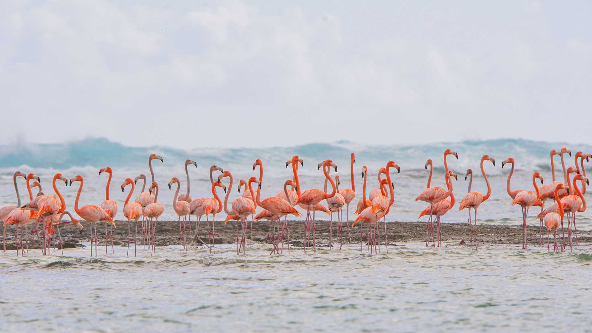 On the eastern tip of Pirates Well, we saw a small flock of flamingos, about 30 birds, on the outer fringe of a mangrove creek. I had some expectations for spotting these birds here, as I have documented them in this same spot several times in the past. On our way back to National Geographic Sea Lion, we saw another small flock of birds flying toward the first group. We knew right away that the flock was getting larger. We wanted our guests to have the chance to see a flamboyance twice the size as the one we encountered yesterday.