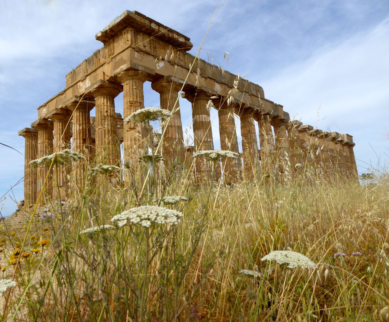 Bathed in soft morning light, amidst fields of ripe winter wheat, wild carrot and marigolds, the massive, weathered sandstone columns of early 5th century B.C. Greek temple certainly seduced our eyes, camera lens, souls and imaginations. Almost certainly dedicated to the Goddess Hera, Temple E is the most complete of the seven temples at the site: four atop the walled acropolis and a further three on the eastern hill above the ancient harbor. For the rest of the morning we immersed ourselves in the legacy of ancient Greece as we explored the architectural and archaeological wonders of the Selinunte. Many choose to stretch their legs and hike amongst the wildflowers and pine trees that filled the valley between the two hills of the city. The impressive ancient city walls were covered with ripe caper plants, while the ruined houses of the acropolis were filled with rows of spiny acanthus.