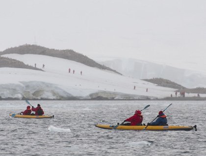 Two other options were given this morning – kayaking and Zodiac cruise. So soon after the first group is ashore the kayaking starts in the back part of the bay. Next it is the cruises off to explore a little further afield, finding icebergs, fur seals and chinstrap penguins.