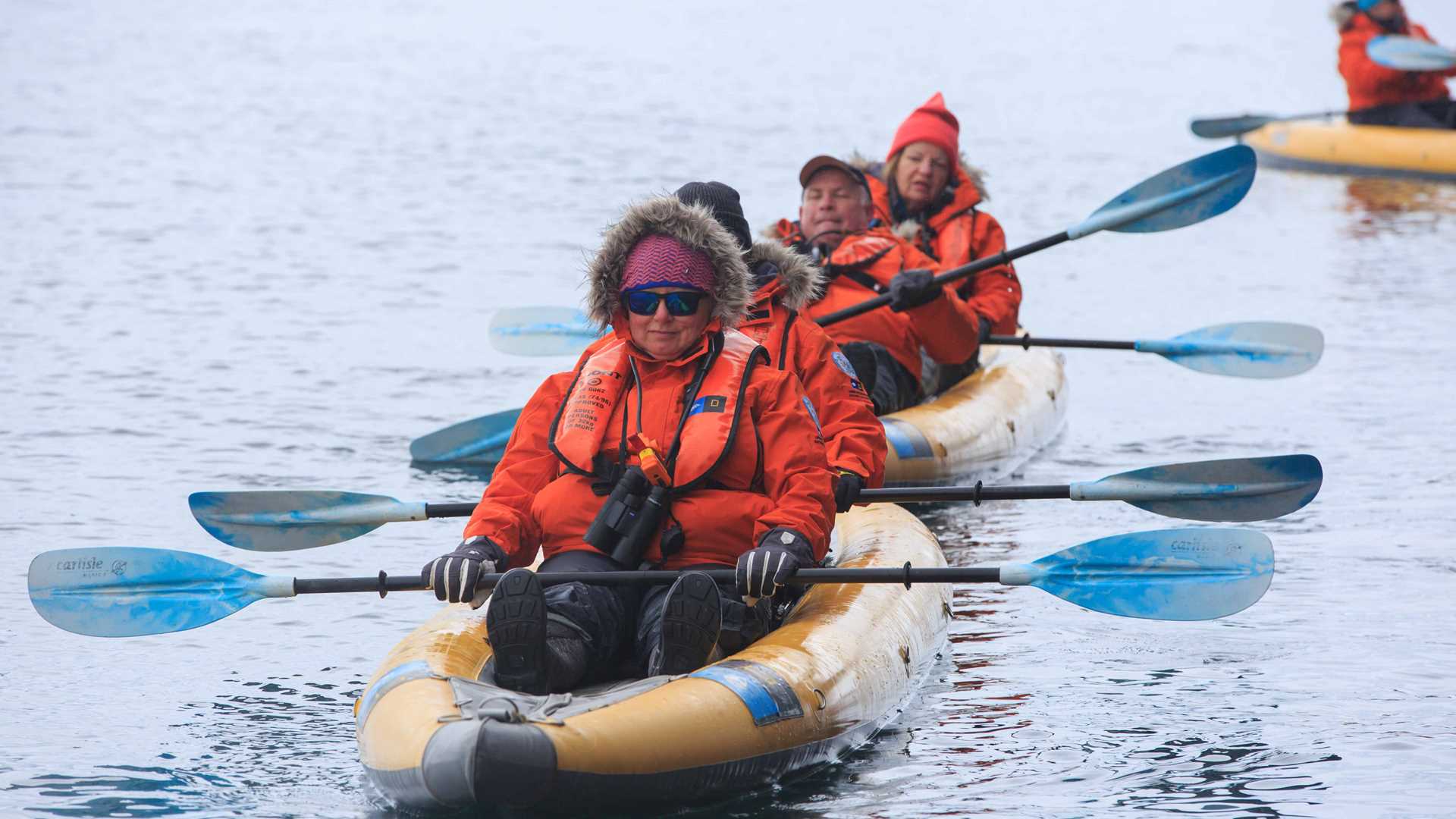 Christmas day in Antarctica was definitely not a disappointment. The morning started with a landing at Mikkelsen harbor to visit a small island teeming with nesting Gentoo penguins and an unlikely welcome visit of elephant seals relaxing in the middle of the colony! As well as the landing we were able to take advantage of a kayak around the bay enjoying flat calm seas and crystal clear waters allowing us to see the seabed several meters below. After this we departed for Cierva Cove. As had become tradition our initial plans were scrapped when we discovered a pod of type A Orcas, the top Antarctic predator and largest Orca species in the world! One particular orca was incredibly inquisitive and was seen for around 10 minutes swimming by and rolling under the bow of the ship. We were eventually back on track and arrived at Cierva Cove in time for a spectacular ships cruise to a large glacier and zodiac cruise to wildlife and icebergs.