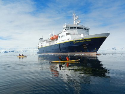 Up on deck there was a dazzling panorama of snowy mountains, the low morning light turning the icefields lilac. This is Orleans Strait, the Antarctic Peninsula to the left, Trinity Island to starboard. The light was so clear we could see the buttery yellow peaks of Anders Island 40 miles away to the south. The calm, powder blue sea showed every ripple and catspaw, so it was no effort to spot the blows of both minke and humpback whales to either side. Our destination this morning was Mikkelssen Harbour, a sheltered bay at the southern tip of Trinity Island, and with the ship anchored and the sea calmed it was the perfect spot to use our fleet of kayaks. Other intrepid explorers were landed by Zodiac on the tiny island in the bay, and running the gauntlet between gentoo penguin colonies and a group of preening blue-eyed shags, they followed our marked trail to the summit. We were halted for a while by a young elephant seal that had chosen the small plateau to begin its summer molt. Our delighted hikers, sweltering now in their heavy Antarctic coats also needed to molt a few layers as they climbed to the summit ridge. Down on the other side were more seals slumped in the snow, crabeaters and Weddell seals, oblivious to our invasion. The beach here is a legacy of early whaling a century ago: piles of whale bones scattered over the shore from the days when whales were dragged ashore, stripped of blubber and the carcass discarded in the bay. No sooner had we returned to the ship than a “Polar Plunge” was announced and 60 deranged guests leapt (without wetsuits) into the frigid water and leapt back out twice as fast! Heroic insanity but applauded by all….