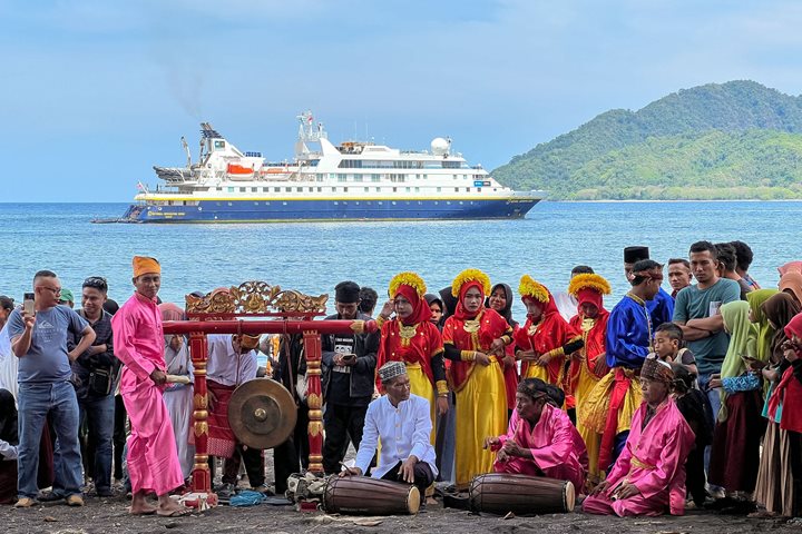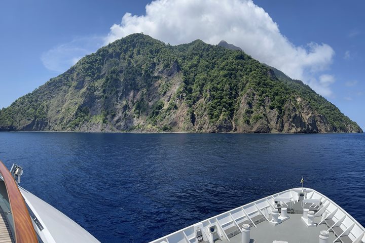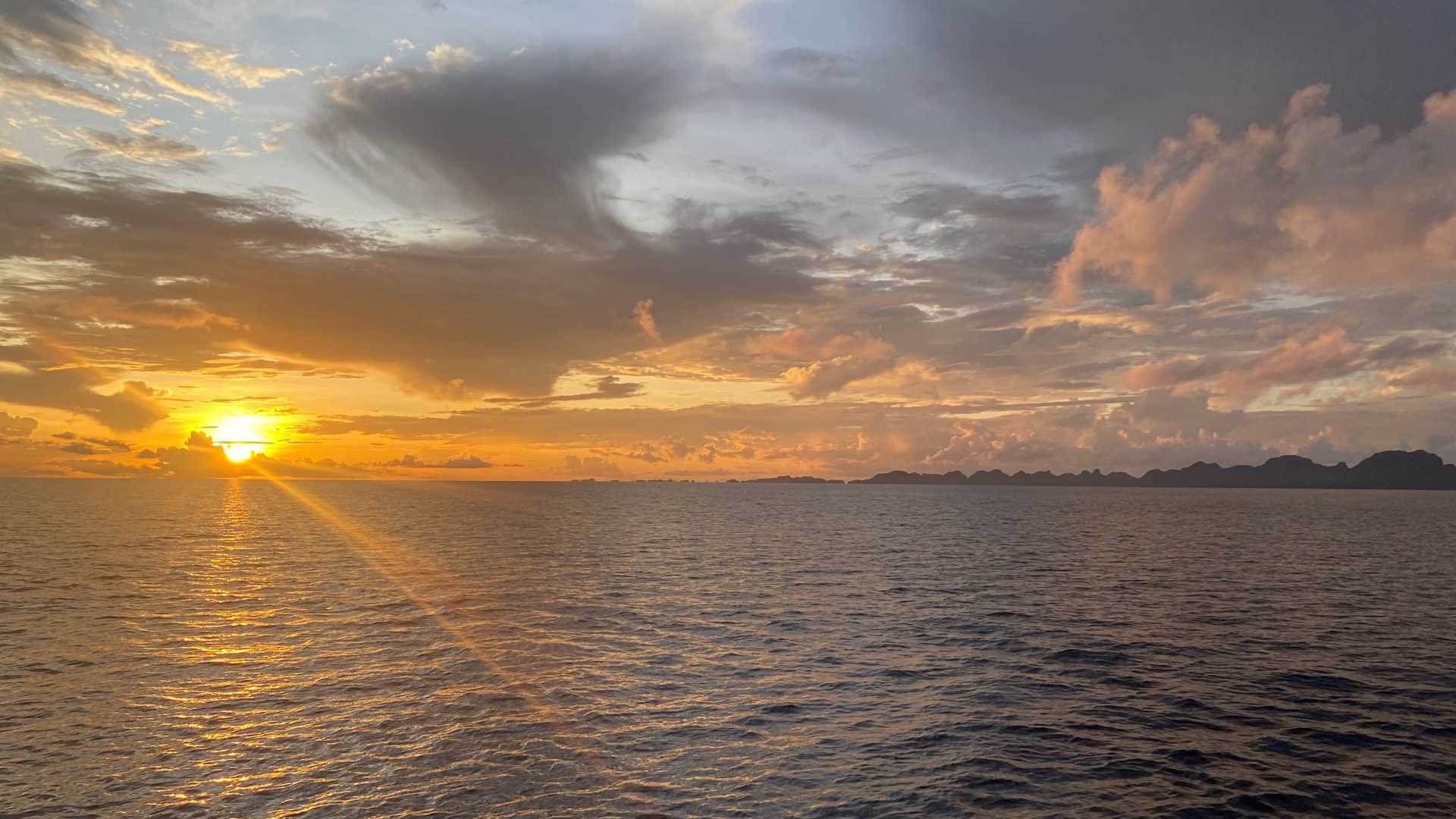 We motored back to the ship for a quick switchover to snorkel mode before returning to the myriad of fish, sponges, and corals in the seemingly invisible water. Everyone sported ear-to-ear grins. We wrapped up our morning daydream just in time for lunch. We pulled the anchors and set sail for our next adventure. As the sun was setting, we watched a blue whale swim into the sunset.