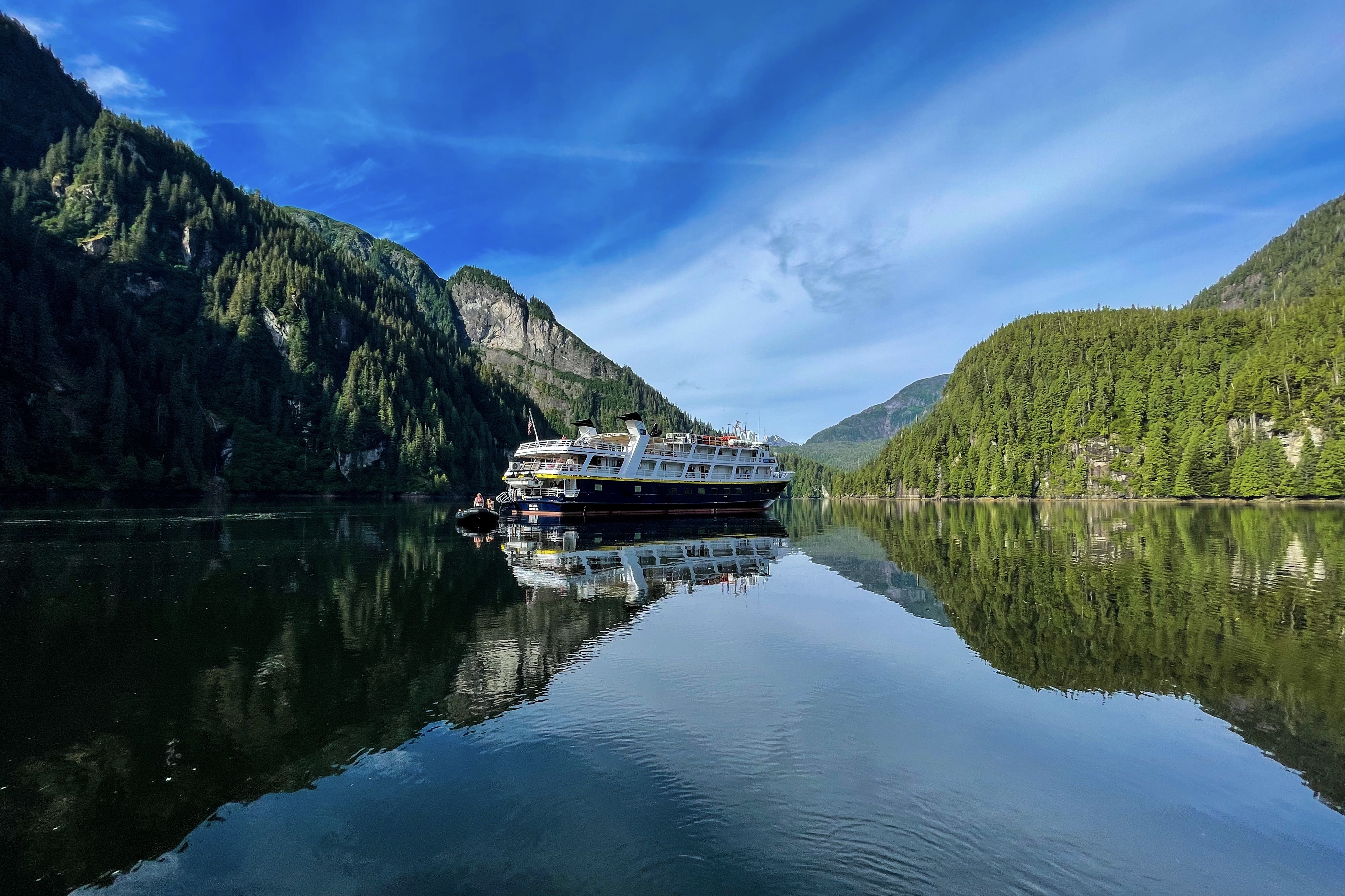 The National Geographic Sea Lion cruised into a not so Misty Fjords for an activity filled last day. The ship expertly navigated through Owl’s Pass and into the upper bay, colloquially known as God’s Pocket. The scenery and peacefulness of this destination is the ultimate snapshot of Alaska, a place known for its extremes. The foundation of this special place is its bedrock geology and its glacially carved landforms. Time, glaciers, and water etched a fantastic landscape that tells an incredible story.