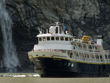 We were welcomed by another sunny day as the National Geographic Sea Bird made her way through Frederick Sound to Ideal Cove. After our morning stretch and breakfast, we went ashore early this morning to explore the trails on Mitkof Island. As usual, our guests were divided into different offerings of hikes ranging from a quick aerobic pace, to a more leisurely interpretive walks, to a photographic-oriented hike. This is one of the most scenic walks in the Tongass National Park. The forest service trail is made of fishnet covered boards—a "plank walk" that takes us through the old growth forest filled with towering Sitka spruce and western hemlocks, flowering shrubs, and mosses and lichen. After our hikes, our young explorers were given a lesson on driving the expedition landing craft.