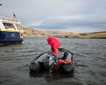 By late afternoon we were close to the White Narrows, a particularly narrow channel that we needed to get through in order to reach Puerto Natales. Two Zodiacs were dispatched to check the right moment for the ship to be able to sail through the passage and film the event. It is only possible for a ship to sail this body of water at slack tide, for once the tide changes the currents can reach speeds of 12 to 14 knots!