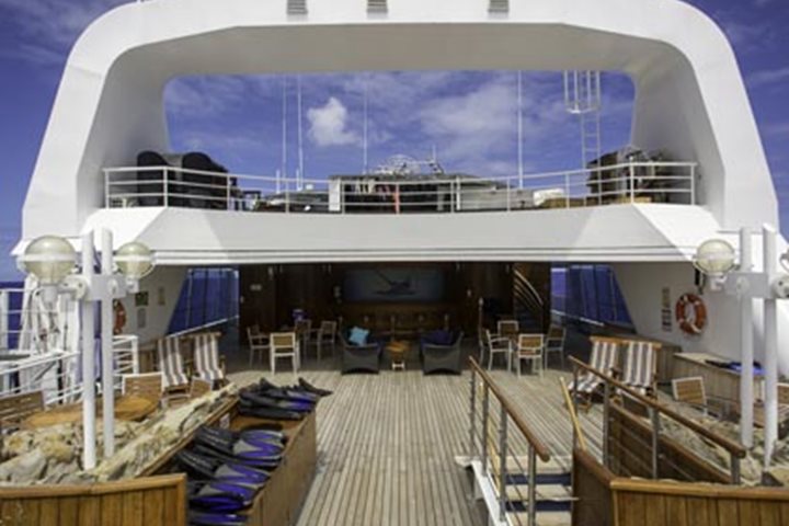 As the fireworks ended, yet another special performance was still to come. On the upper deck, a troop of Tahitian dancers wowed us with a dynamic performance of their regional dances, drumming and music. Men and women alike moved with incredible dexterity. The women blended gyrations of the hips and flowing movements of the arms, while the men tended towards fast, pulsing rhythms, all the while the musicians set the pace. It was a wonderful end to a full day.