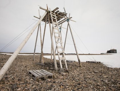 We all went ashore and divided into several hikes, starting at the site of a trapper’s cabin located a few feet from the shore. The most striking feature was the tall wooden structure, more than 20 ft. high used to cache meat away from polar bears. A really large male polar bear standing on his hind legs and stretching his long neck could sniff the back of a bull African elephant, so tall structures like the one we saw today are a must for trappers here. The cabin was in good condition and seemed to be used recently; trappers still spend the winters all over Svalbard looking for arctic foxes for the fur trade; in the past they also hunted polar bears, but the species was protected in 1973 by the Norwegian government.