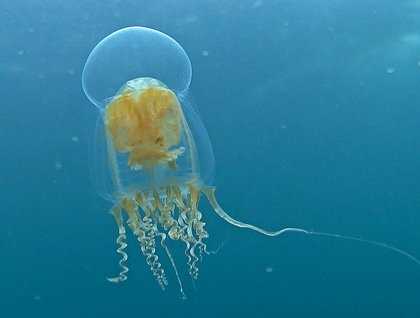 Others seem similar to a jelly, but are only very distant relatives such as the comb jelly with eight rows of fused hairs that they rhythmically beat for locomotion.  They catch their crustacean prey with two long sticky tentacles.  I call it the ‘fisherman.’