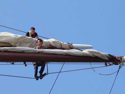 Another beautiful day in the sparkling Aegean began with a relaxed morning of sailing. The meltemi winds, normally active in July and August, have persisted well into September this year. While providing ample opportunity for sailing, these northerly winds can cause frequent itinerary adjustments, as the strong winds prevent the ship from entering certain ports. This morning, with the lower and upper topsails and topgallant sails set, we sailed in the direction of the island of Naxos.