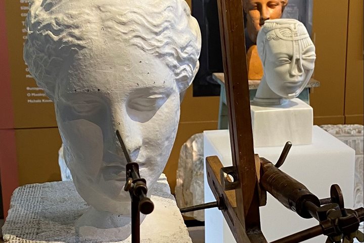 Unlike most of the Cycladic islands, Naxos is rich in agricultural land, exporting its abundance of fruit and vegetables to other parts of Greece; the island is especially known for its potatoes. Although the Greek myths note that Ariadne was unceremoniously abandoned by Theseus on Naxos, she soon caught the attention of Dionysos, god of wine, who had been raised on the island. Fitting for the island of Dionysos, Naxos today is today known for a certain liquor called kitron. Distilled from citrus leaves, this liquor—which can be yellow, clear, or green, depending on its sweetness and alcohol content—has a delicate and curious flavor. After arriving on the island, we drove to the inland village of Chalke, where we toured a small kitron distillery as well as the local parish church, first built in the early Byzantine era and reconstructed in the 11th century.