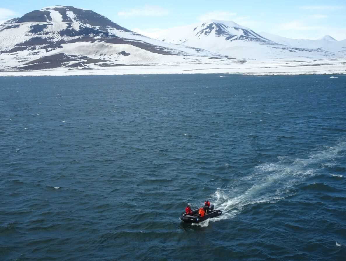 This morning, everyone still had vivid memories of last night’s sunny bear encounter. However, a new day started, and it promised new adventures. Before breakfast, our ship was positioned near Kapp Lee, where we planned a landing to stretch our legs for the first time on Svalbard soil. A scouting party went out and came back with a negative result. There was too much ice and deep snow on the landing. In expedition style, our plan quickly changed. The ship entered the spectacular channel of Freemansundet, located between Edgeoya and Barentsoya Islands. Soon after breakfast, naturalist Jackie Weston gave a presentation entitled “Introduction to Polar Bear Biology,” which helped us understand more about our observations last night.