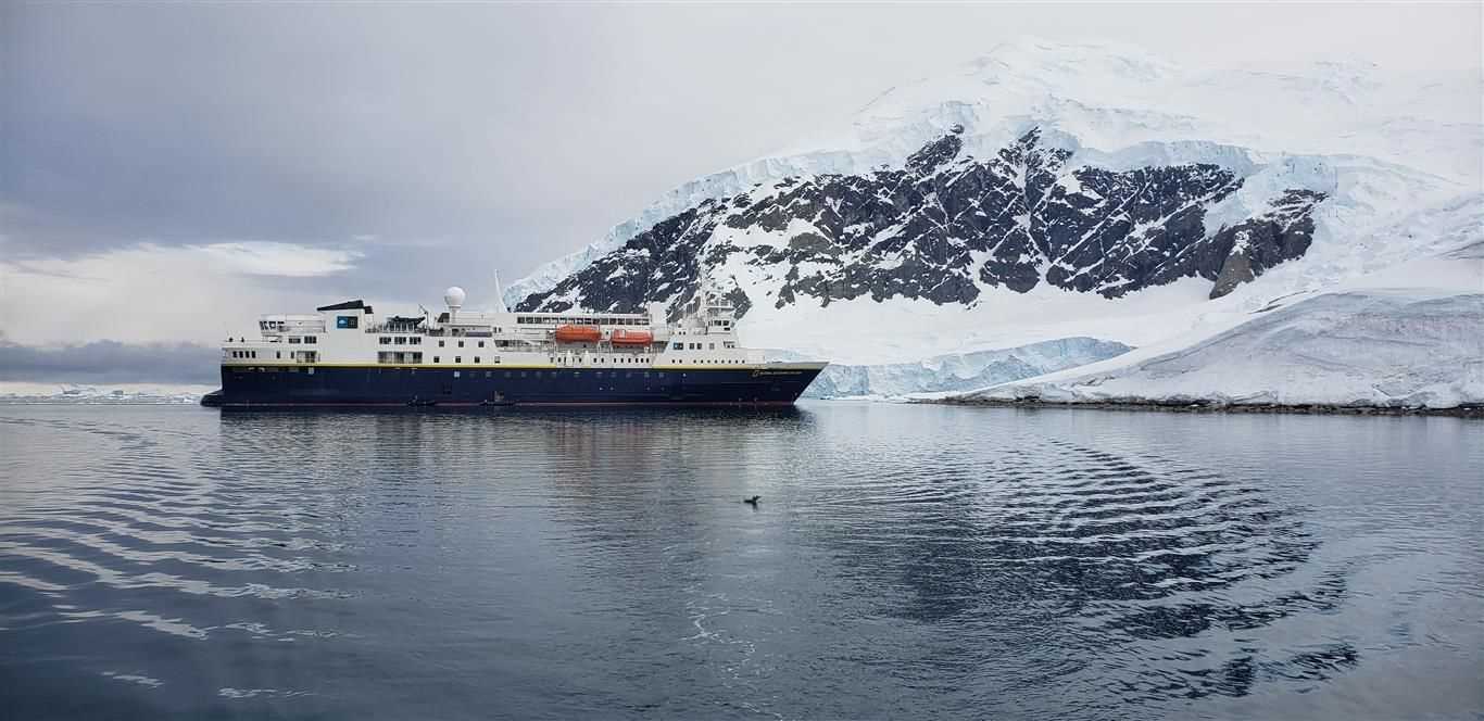In the afternoon, we traveled to Useful Island where guests enjoyed both a Zodiac cruise among the glistening icebergs on a glittering sea as well as an onboard presentation on penguins. And just before dinner, we had a magnificent encounter with the other top Antarctic predator—the killer whale. A pod of about 20 were spread out around the ship, some of them coming right up beside it. It was very special to be able to see the white patches beneath the clear water as they swam. Our evening concluded with a presentation by Global Perspectives Guest Speaker Lee Holtz entitled “The Big Melt.”