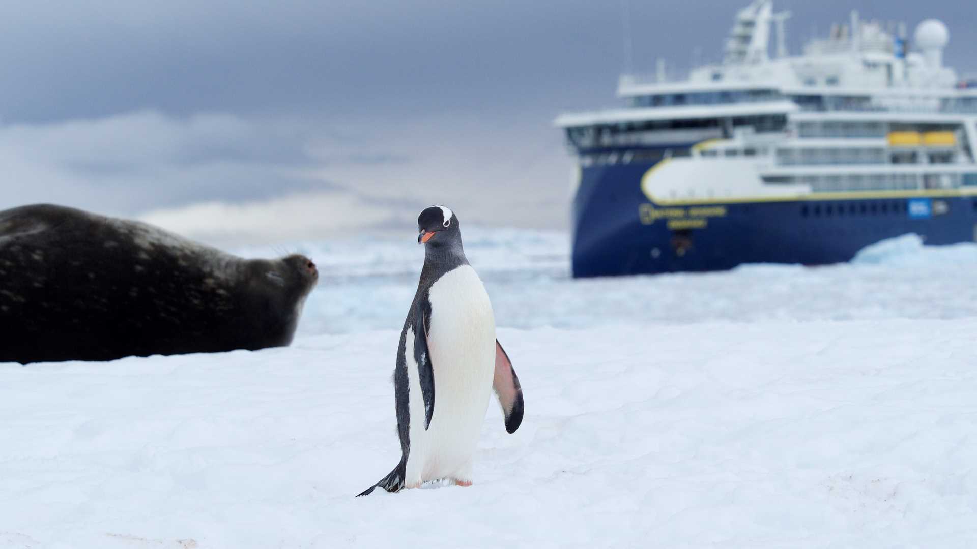 Our last day on the white continent was a memorable one. The morning started with a continental landing in Neko Harbour. Towering peaks surrounded by glaciers made for stunning scenery. This landing can be challenging due to ice from frequent calving. Sailing aboard National Geographic Endurance, an ice-class Polar Code PC5 (category A) ship, allows us to reach remote places despite challenging conditions.