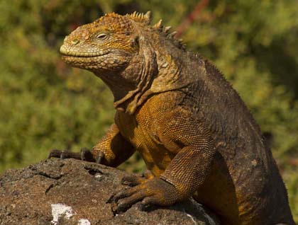 As we reached the inner trail, it was time to look for one of the big challenges of the morning: Galapagos land iguanas. These spectacular reptiles were found feeding on a few grassy plants found in the area as an indicator of the wet season. The incense tree forest, along with orange lava boulders, were the perfect decoration for a natural paradise. Once we reached the interior of the incense tree forest, several male frigate birds were displaying their red pouches as well as pronouncing a symphony of sounds to the females. Once we came back on board the National Geographic Endeavour, it was time to start our navigation to our next destination