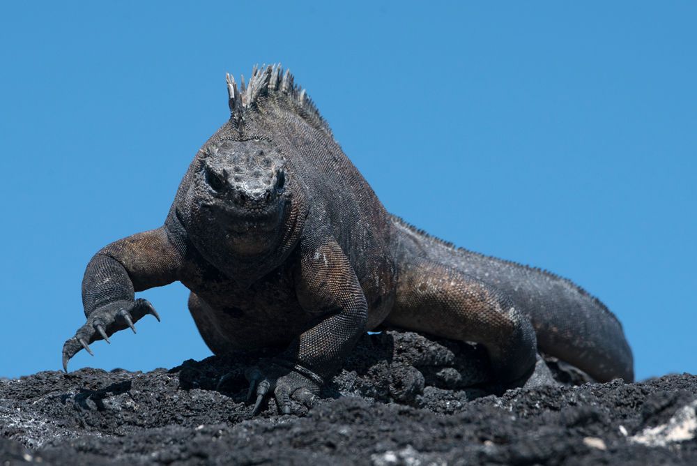 We woke up early in the morning as National Geographic Islander navigated along the northern part of Isabela Island. Slowly the sun appeared above the clouds surrounding Volcano Wolf. We spotted our first birds as Galapagos fur seals returned to shore from their night hunt. We enjoyed a great breakfast. Afterward, expedition leader Vanessa called everyone to the bow to celebrate as we crossed the equator. Our guests happily crossed the line. Approaching Punta Vicente Roca, the visitor site, we spotted Galapagos sea lions and a good number of ocean sunfish. The first activity of the day took place as we dropped anchor at Punta Vicente Roca. This is a spectacular geological site. The combination of the former volcano’s tall cliffs and the tuff cones formed later adds an amazing contrast to this unique visitor site. Our best tools for exploration, our Zodiacs, were lowered down, and off we went to explore the coast. We observed Nazca boobies and blue-footed boobies resting on the small ledges of the tuff cones. Galapagos sea lions swam close to our Zodiac, and Galapagos penguins rested on a broken piece of the tuff cone after feeding. What a wonderful sight! In a calm area, we found a good number of Pacific green sea turtles. The morning’s activities ended with snorkeling. Pacific green sea turtles, plenty of colorful fish, Galapagos marine iguanas and flightless cormorants surrounded us. It was a phenomenal experience! The ship was repositioned toward Fernandina Island. The youngest island of the archipelago, Fernandina is a highlight of our expedition. This island shows our guests the beginning of life. We observed animals thriving in the hostile environment. Pioneer plants like lava cacti grow on the lava fields, breaking down rocks little by little to create soil for the next generation of plants. Punta Espinoza is known for its huge colony of Galapagos marine iguanas. It is hard to distinguish the iguanas from rocks since they are so dark in color. On the other hand, colorful Sally Lightfoot crabs added contrast to the young, dark lava fields. We ended our walk as the sun was setting, returning to the ship with great memories. It was a fantastic day in the western part of the archipelago.