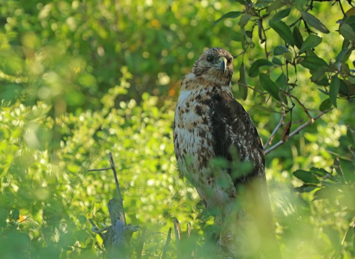 A few blue-footed boobies also are nesting. Most have young mature enough to learn to fly and dive for fish. The interactions among all of the inhabitants here are quite interesting and sometimes even unpredictable. Sea lions here find areas with sand or vegetation to rest. Land iguanas draw water and eat from succulents like the local prickly pear cactus. Marine iguanas sunbathe, gathering heat before they enter the water for algae foraging.
