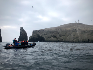 Our first full day in the Galapagos starts well with high energy and optimism. After breakfast we are in the Zodiacs, heading out to the island’s landing to be welcomed by several species of birds, crabs and sea lions. In the interior of the loop trail, the nesting sea birds are abundant. Frigates are nesting, and for that the males inflate their red gular sacs to the size of soccer balls that are then displayed to females for mating. Some sit on the eggs and are already raising young.