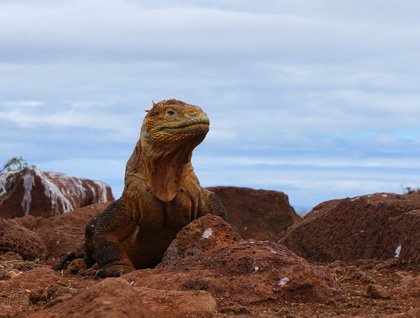 At the end of the morning we left North Seymour Island and got snorkeling gear while we headed to the island of Rábida, where we went snorkeling from the beach and in deep waters. During these activities we found different species of fish. Some of our guests encountered a couple of white tipped reef sharks, and Galapagos sea lions in the same area. After our water activities we returned aboard to get prepared and then headed towards the island for a great scenic walk. There we enjoyed the bright red color of the sand, the green vegetation and the deep blue color of the ocean while ground finches, Galapagos mockingbirds and lava lizards were looking for food along the trail.