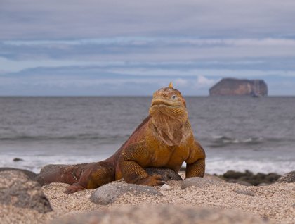 As the thick mist-ridden clouds cover the island we land for a short hike and the scenery does not disappoint us. Young Galápagos sea lions line the beach as a young pup, not more than a few weeks old, nurses with its mother. A Galápagos mockingbird runs back and forth among us and nearly runs into our feet as it searches for small insects. Gaining altitude allows us to examine our anchorage and enjoy the matted colors of the sunset over Isabela Island. Darkness closes our exploration as we return to our floating home, contented and curious about what tomorrow will bring.