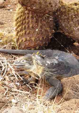 The Galápagos Archipelago is comprised of thirteen major islands of varying sizes. One of the smallest ones is North Seymour, although it is home to a large number of unique species. Amongst its residents are the two species of frigatebirds; it is very special to be able to walk through their nesting grounds, something nearly impossible to experience anywhere but here, where they show a great amount of fearlessness. The great and magnificent frigatebird colonies were quite active this morning, and we were able to watch many individuals performing different duties: males courting from the bushes where they were perched, juveniles being fed by their parents, and some adult frigates chasing other birds in their usual manner, from which they have earned their reputation as the ‘pirates of the air’. Not far from the nesting frigates, we could observe one of the most popular species of the Galápagos: the blue-footed booby. A new breeding season seemed to have begun amongst them, since we were able to witness their famous ‘booby dance’. The contrast between their blue feet and the green-red vegetation that covers much of the coastal areas was simply stunning. North Seymour is also inhabited by a large number of land iguanas. This endemic species was once threatened by the introduced black and Norwegian rats, which eat the hatchlings and the young. Today, these aggressive, introduced predators are gone, thanks to the efforts of the Galápagos National Park Service, which has eradicated the rats.