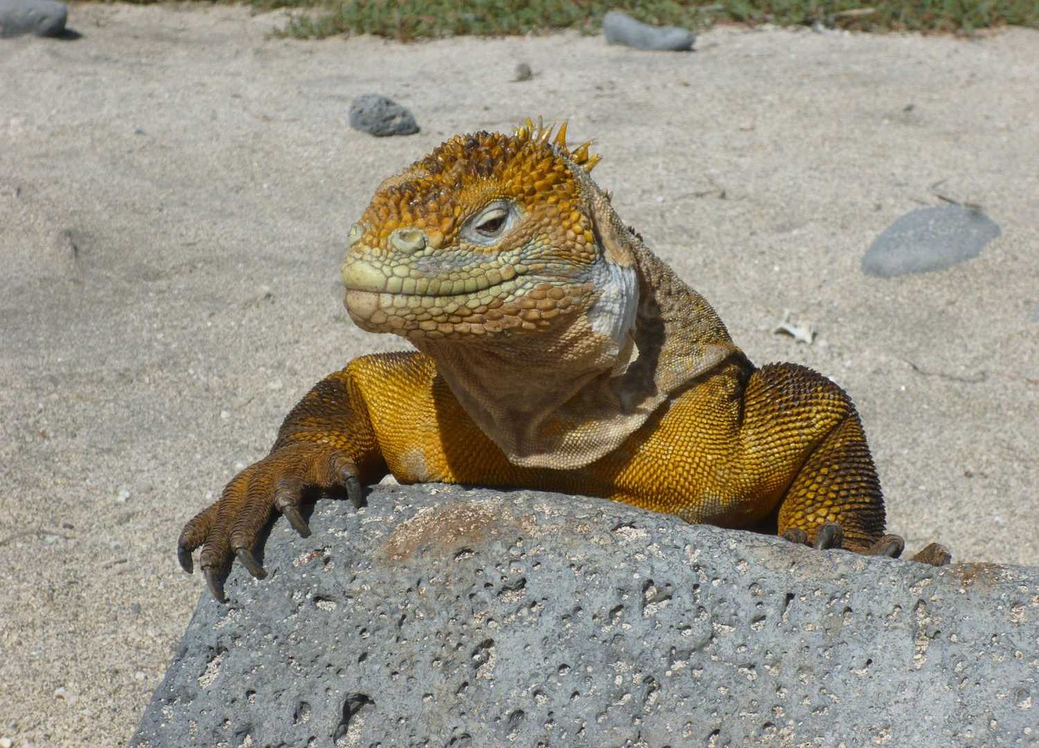 As we strolled around, we had a wonderful opportunity to find the Galapagos swallow-tailed gull protecting recently laid eggs, magnificent frigatebirds with inflated gular sacks were actively looking for females that where flying by. The male land iguanas were displaying beautiful, bright mating colors and shaking their heads up and down to impress the female passersby.