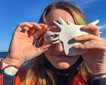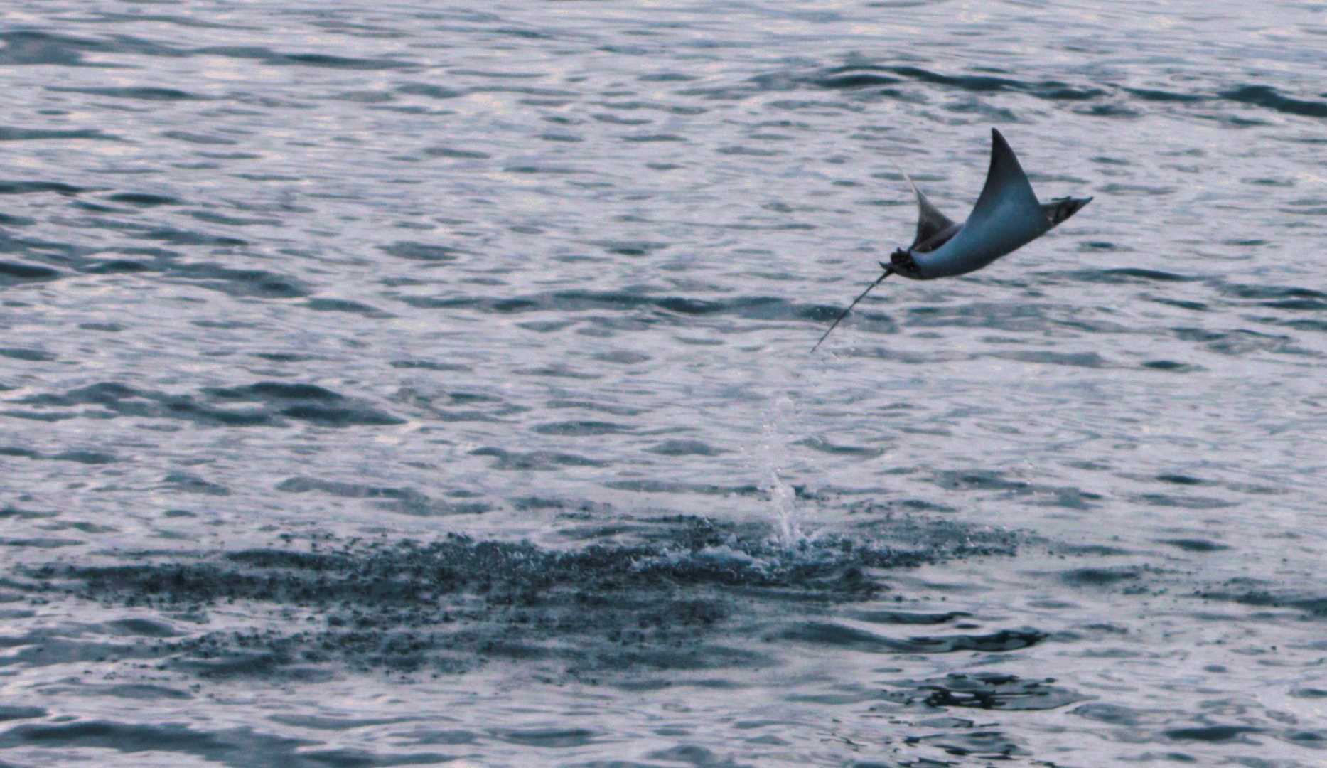 We also found land iguanas eating cacti. During the dry season, the iguanas struggle to locate food so they climb the spiny cacti. We also spotted a leucistic frigatebird perched on dry vegetation by the trail. During our Zodiac ride, we watched mobula rays jump in the ocean!