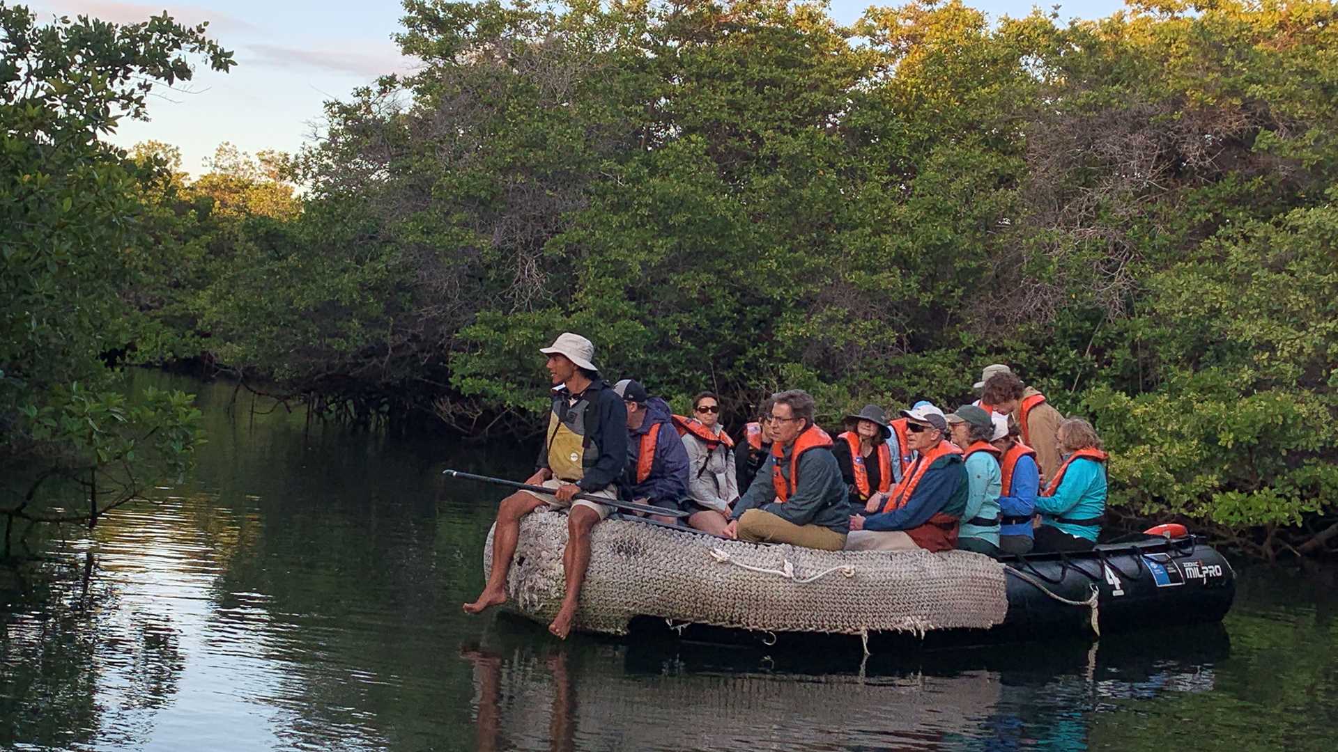 On April 24, we started a new voyage. Our guests arrived onboard at 14:00 and by 16:30, they were ready to explore Black Turtle Cove. In four Zodiacs, we departed into the channels of the northern shores of Santa Cruz Island. It was a surprise for all! No one expected to navigate through such a dense forest of mangroves. People usually associate Galapagos with giant Opuntias and barren lava. However, there we were, surrounded by green, red, white, and black mangrove species. The area is a nursery for fish and crustaceans, an important habitat within the tropics. Fortunately, the area is protected in the Galapagos. Therefore, we encountered dozens of spotted eagle and golden rays as they swam amongst green sea turtles and whitetip and blacktip sharks. As Javier said, it was a lagoon on steroids! After dinner, we enjoyed a perfectly clear sky. I shared the constellations I know with guests, including the famous Southern Cross, half of Orion, and half of Scorpio. The two were visible at the same time but not completely; otherwise, they would have been fighting.