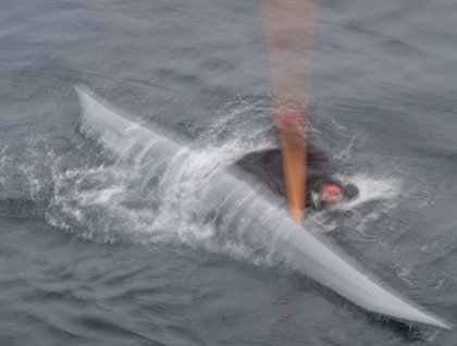 After one of the most exciting and diverse visits of the expedition, guests departed the colonial harbor and immediately made their way to the sundeck for a special presentation by the local kayak club. The Greenlandic kayakers performed in a group of three, exhibiting how adept they were in rolling their kayaks. As the kayakers finished their final rolls, the guests turned in as fog approached Explorer, shortly after which the anchor rose and we began our journey toward the Arctic Circle.