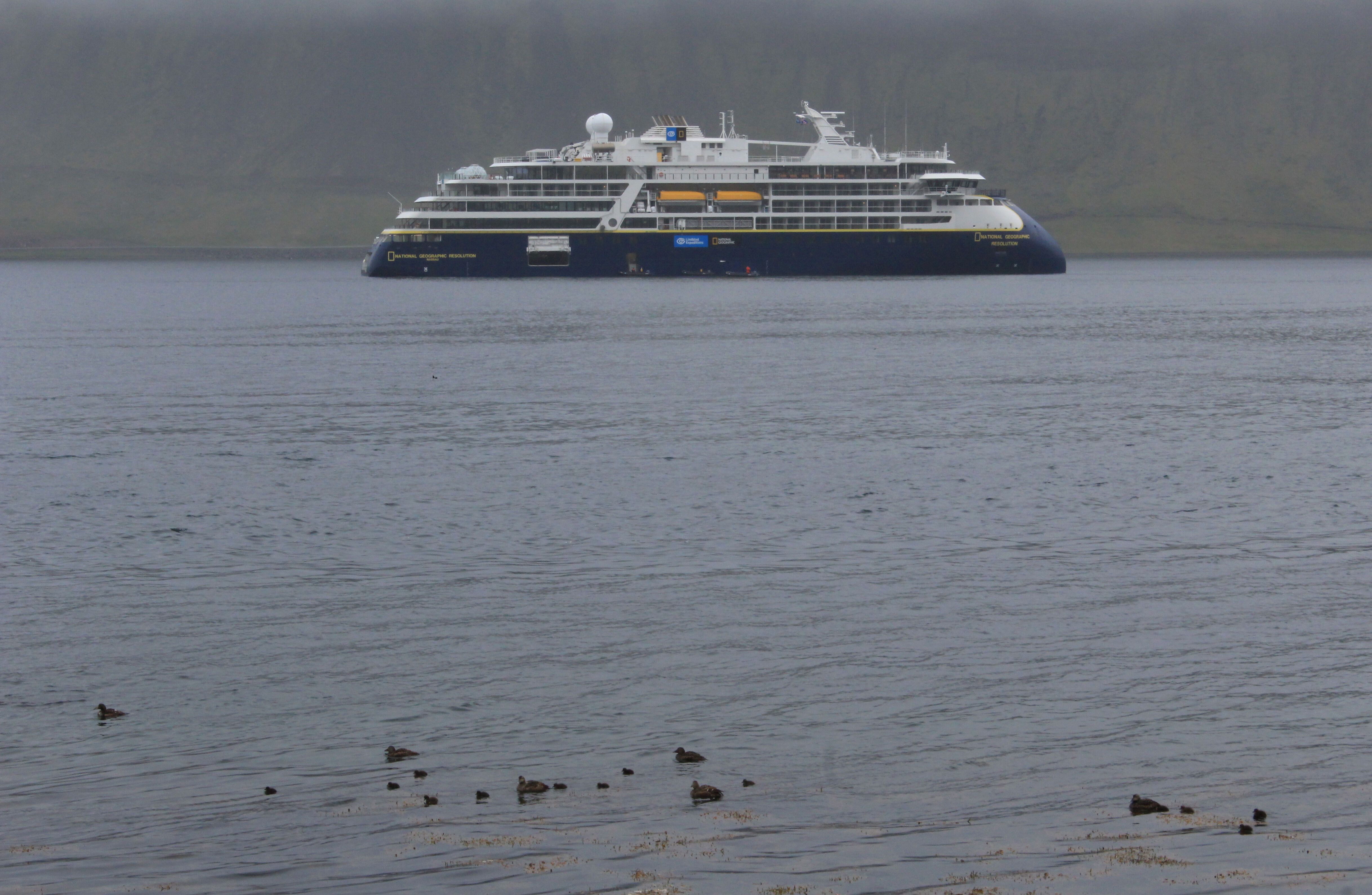 Almost as soon as we started our return to Kirkwall and our ship, National Geographic Explorer, it started raining again. We drove past Scapa Flow, where the Germans scuttled their fleet of ships rather than handing them over to the British at the end of World War I in 1919. We passed the underwater grave of the Royal Oak, torpedoed by a German submarine in World War II, and Highland Park, the most northern whisky distillery in the United Kingdom.