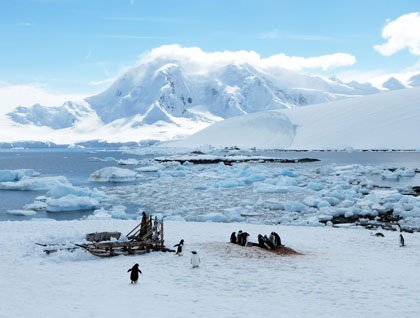 We passed through the Neumayer Channel, one of the most impressive passages in Antarctica, to reach Port Lockroy. This protected natural harbor was found by the French explorer Jean Baptiste Charcot in 1904, and used by whalers in the early decades of the 20th century. The bones of their prey remain. In 1944, the British established a base here. Its function in the war effort is not at all clear. After the war, it became a site for geographical and atmospheric research by the Falkland Islands Dependency Survey (later the British Antarctic Survey). The sleds that now sit on the snow in front of the main building were once pulled over the Antarctic snow by dogs on survey trips that could last for months. The station was abandoned in the 1960s. It fell into ruin until the British Antarctic Heritage Trust restored it as an Antarctic museum and the southernmost gift shop of our voyage, of which we took full advantage. Gentoo penguins nest under and around the buildings, and at nearby Jougla Point, paying little attention to our visit.