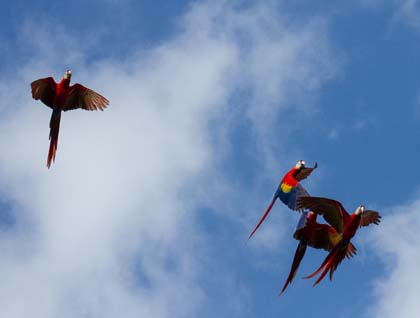 In the morning we visited the buffer zone of Caletas, walking inside the tropical rainforest and its adjacent coastline, where we had great views of the spectacular, colorful, and noisy scarlet macaws and acrobatic spider monkeys.