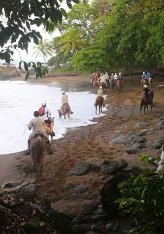 After an unsettled passage overnight from the Golfo Dulce, National Geographic Sea Lion anchored off the Osa Peninsula at dawn. A slightly overcast sky ensured pleasant temperatures for our morning activities ashore at Caletas Reserve. Our first guests ashore eagerly departed on a horseback riding excursion led by our Panamanian guide Christian Moreno; while riding along the shore to and from the Río Claro estuary they enjoyed watching a family of capuchin monkeys cavorting and feeding in the trees overhead. Others set off to explore the rain forest on the muddy “Long Walk” led by Costa Rican naturalist guides Isabela Salas and Maguil Céspedes, while photo instructor José Calvo led a short “Premises Walk”—participants were rewarded with sightings of, and opportunities to photograph, a violaceous trogon, the endemic black-cheeked ant tanager, and even a great curassow.
