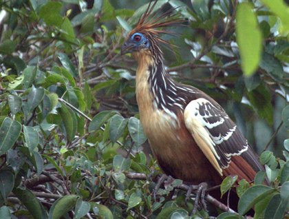 We arrived to a section of the river in which a colony of hoatzin was foraging. This bird related to cuckoos has the appearance of a prehistoric bird. They posed for the cameras and then continued to their own business.
