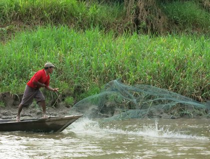 This afternoon we visited the small village of Urarinas during our exploration of the Zapote River. This village is in the flood forest where houses are built on stilts and water floods under their houses for at least a few months a year. Right now is the low water season, so it was dry and we walked through town. Once again, we met friendly people and happy kids. No phone or internet here. Electricity for a few hours a day at best. Although these people do not have “much” in our way of thinking about possessions, they have abundant fish in the river and plenty to eat. They have time to play as well. Squeals of delight echoed across the soccer field as kids enjoyed a game of dodgeball with naturalist Chino and guest Kevin. And the men were gathering for a Friday evening soccer game. Many things translate without a shared language. Smiles and photographs and dodge ball were three of those things today.