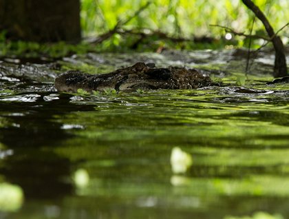 Aside from the many red howler monkeys and birds that we saw, we had a glimpse of a world's largest rodent, the capybara, and two adult black caimans. We estimate the size of the caymans to be roughly four meters long! As a pertinent theme for the day, Carlos Navarro presented his lecture about crocodilians. Not only had we already seen two huge black caymans, and now we were prepared for the night caiman search.