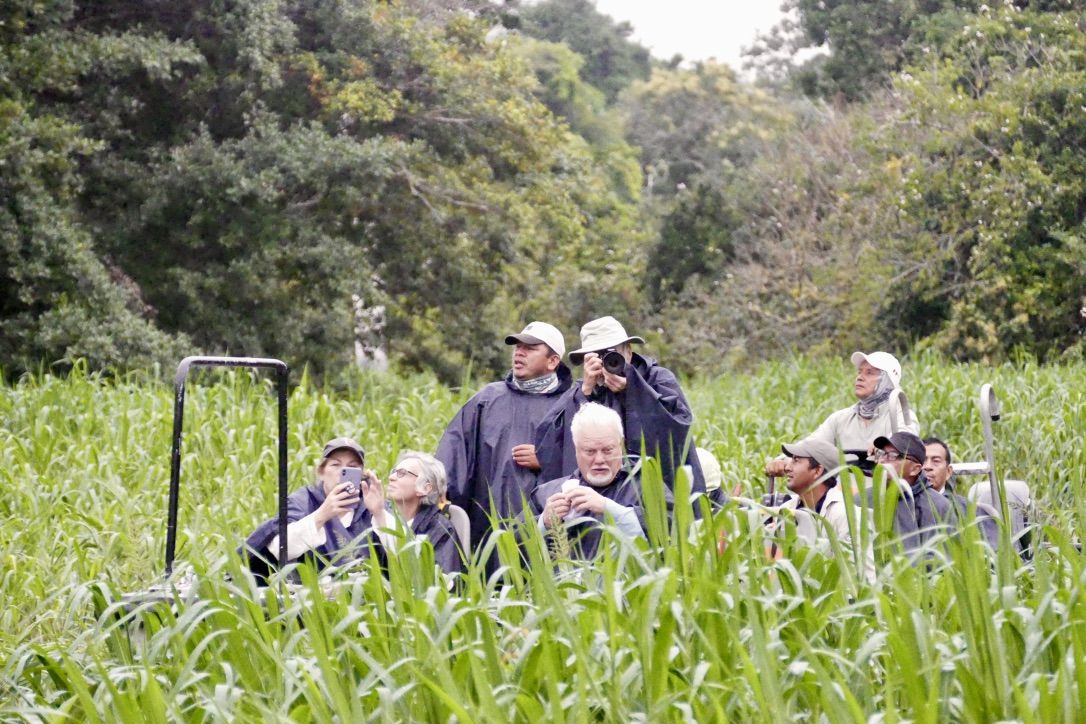 We departed in the early hours for our exploration of Yanayacu River, a tributary of the Marañón River. As soon as we boarded the skiffs, we spotted pink river dolphins foraging in the shallow waters with neotropic cormorants. At this time of year, the landscape is dotted with different species of birds, including large flocks of great egrets. We entered the kingdom of the endless forest, through which most of the rivers flow to form larger ones. The Ucayali and the Marañón Rivers eventually merge, giving origin to the mighty Amazon. This jungle is vibrant and full of life, from birds to monkeys. This morning was a special one, as hundreds of egrets mixed with cormorants, wood storks, and kingfishers. All of them foraged in the early hours. In the afternoon, we visited Amazon Park to explore the forest and suspension bridges. This forest is a pristine one, as no tree has ever been cut. The ecosystem is just like it was thousands of years ago. This is the kingdom of the giants! All the trees in this forest are around a hundred feet tall. We were happy to visit such a pristine spot in the Amazon. Indeed, we felt small as we walked under the canopy. There is so much foliage that there is not much light near the ground of the forest. The rainforest is just amazing!