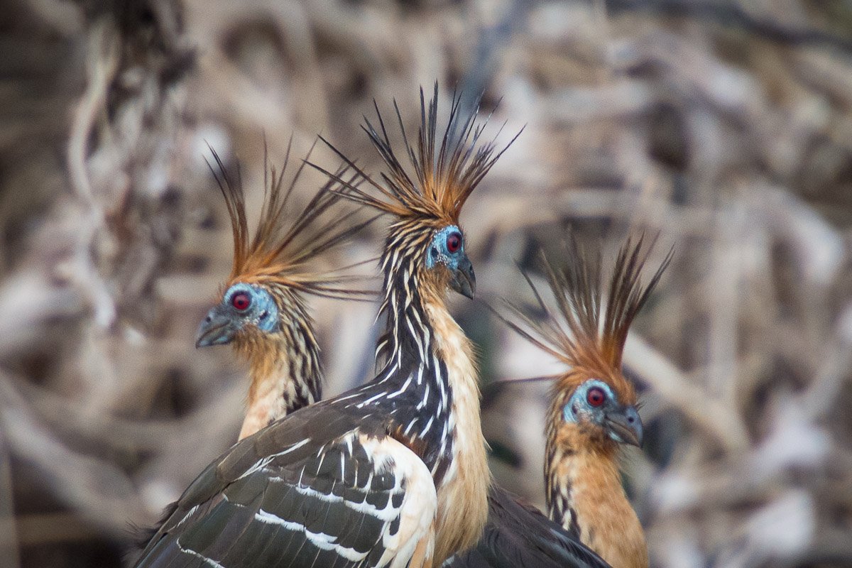 After a great lunch in the afternoon, we explored some more in a different section of the Pacaya Samiria Reserve. Our skiffs took us to the Yanayacu Lagoon for a swim with pink dolphins in the dark tannin rich water. Probably the best sighting of wildlife this afternoon was a group of the prehistoric looking birds called hoatzins. The hoatzins were the delight of our photographers, as they permitted our boats to get really close.