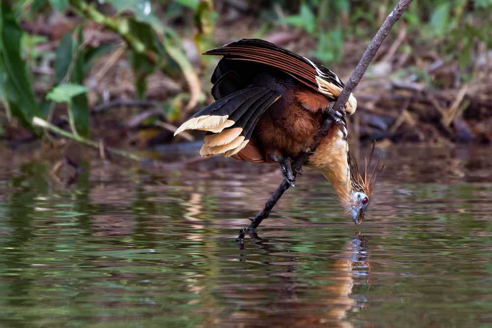 This morning we had breakfast in the jungle underneath the trees. It was amazing to be there surrounded by wildlife and the sounds of many types birds as we had breakfast. The highlights of this outing were many particularly the yellow macaws and a large flock of hoatzins. These birds literally covered an entire tree!