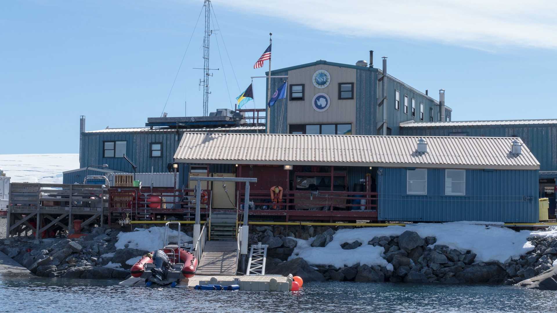 After a night of pushing through dense ice in the Bismarck Strait, we arrived at our morning’s destination of Palmer Station, one of three year-round research bases operated by the United States Antarctic Program. Only 12 ships each year are permitted to visit the small station occupied by 45 participants, and all of the previous visits this season had been cancelled due to excessive pack ice blocking access to Anvers Island. In fact, the ice surrounding Palmer Station had been so impenetrable that even the local scientists had been unable to get out in their boats to conduct research on nearby Torgerson Island. Until just a day or two before our scheduled visit, we hadn’t thought we would be able to make our landing but just enough wind broke up the ice and allowed us a clear passage to our anchorage.