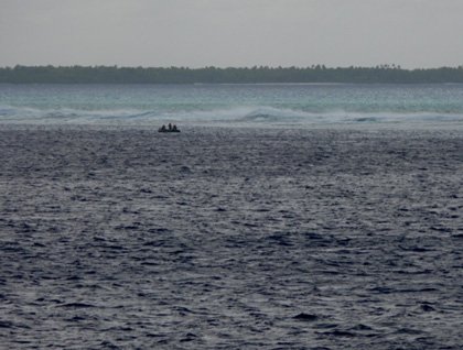 There were several small passages through the reef for our Zodiacs, but the swells were strong and conditions weren’t ideal to get inside the coral reef. The tide was beginning to rise, and that only made our chances of visiting the lagoon even slimmer.