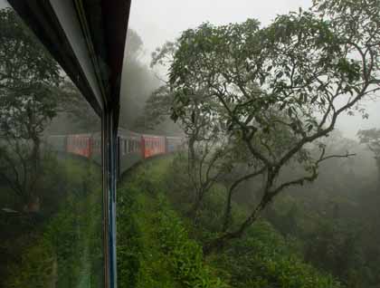 One of our outings today traveled to the capital of Parana State, Curitiba, situated in the middle of the Serra do Mar mountains, where we boarded the Serra Verde Express train to Morretes. The train winds through the spectacular mountainside terrain with much of the slopes and adjacent hills harboring the remnants of the Atlantic forest. The day was a rather rainy day but even with that the breathtaking scenery and exceptionally lush rain forest were a real highlight. As the train passed through the forest, a channel-billed toucan was spotted perched in a tree adjacent to the railway. Upon the arrival in Morretes a fandango show was performed and the guests experienced the traditional meal of barreado. A brief time to explore the town of Morretes before departing back to Paranagua and returning to the ship.