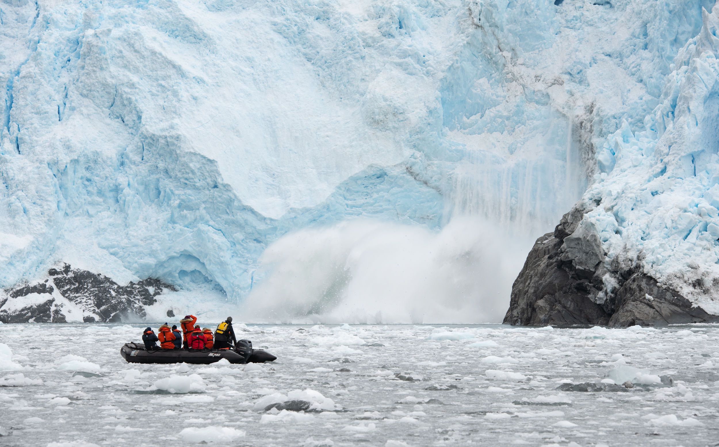 The morning began with the National Geographic Explorer sailing into Seno de las Montañas. This narrow fjord was carved long ago by glaciers and today we were treated to stunning views of waterfalls and snowcapped mountains. Before lunch everyone disembarked the ship to hike up close to the face of Bernal Glacier. As everyone hiked to the glacier, the dive team went out to explore below the waves. After the hike we all enjoyed a delicious lunch and ship began to cruise again. About 6pm the ship passed through the Whyte Narrows on our way to Puerto Natales. As we passed through the narrows, we lined the decks for fantastic view of beautiful Patagonia. We were rewarded with South American sea lions and Andean condors.