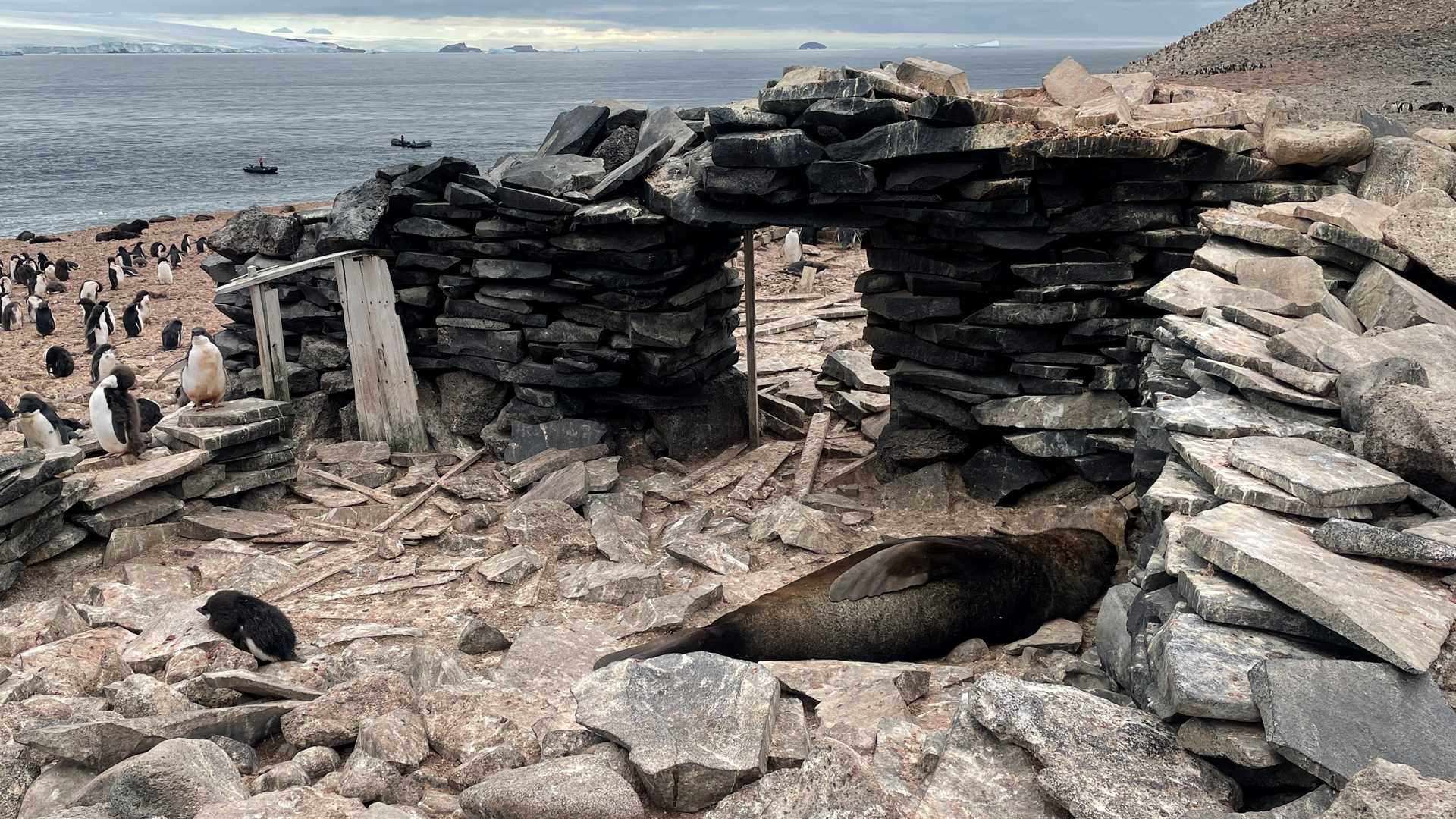 Bright and early this morning, the sun greeted us with glorious morning light on incredible icebergs as National Geographic Resolution sailed through the Antarctic Sound towards our morning destination. We spent the first part of the day in and around Paulet Island, a historic spot for the Swedish Antarctic Expedition in 1903, led by Nordenskjold, where his men overwintered in a small stone hut, having collected 1100 penguins for their winter food supply. Our split operation meant that we could both spend time visiting the island to see the historic hut, the creches of Adelie penguin chicks and the fur seals covering the beach, as well as have a Zodiac cruise, where repugnant carnage ensued! A leopard seal was taking great advantage of the Adelie penguin chicks that were just in the water for the first time, learning how to swim and bath. Unfortunately, not all chicks were unscathed. The leopard seal is a 12-foot killing machine and some of us witnessed the brutal take down of an Adelie chick.
