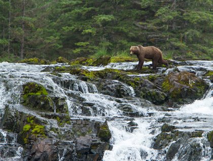 We couldn’t leave Alaska without witnessing the majestic beauty of the coastal brown bear. We searched for evidence of these bears and found great big tracks in the mud, fur on the tree trunks, and remains of salmon at a waterfall. But the most exciting event was actually seeing a couple brown bears at the waterfall! Those of us on shore watched from a safe distance while others were able to capture stunning photos from the zodiacs. The bears walked up and down the waterfall looking for salmon. A mother and her cub traversed the falls in search of food. We were reminded that we share this natural beauty with the animals and plants around us.