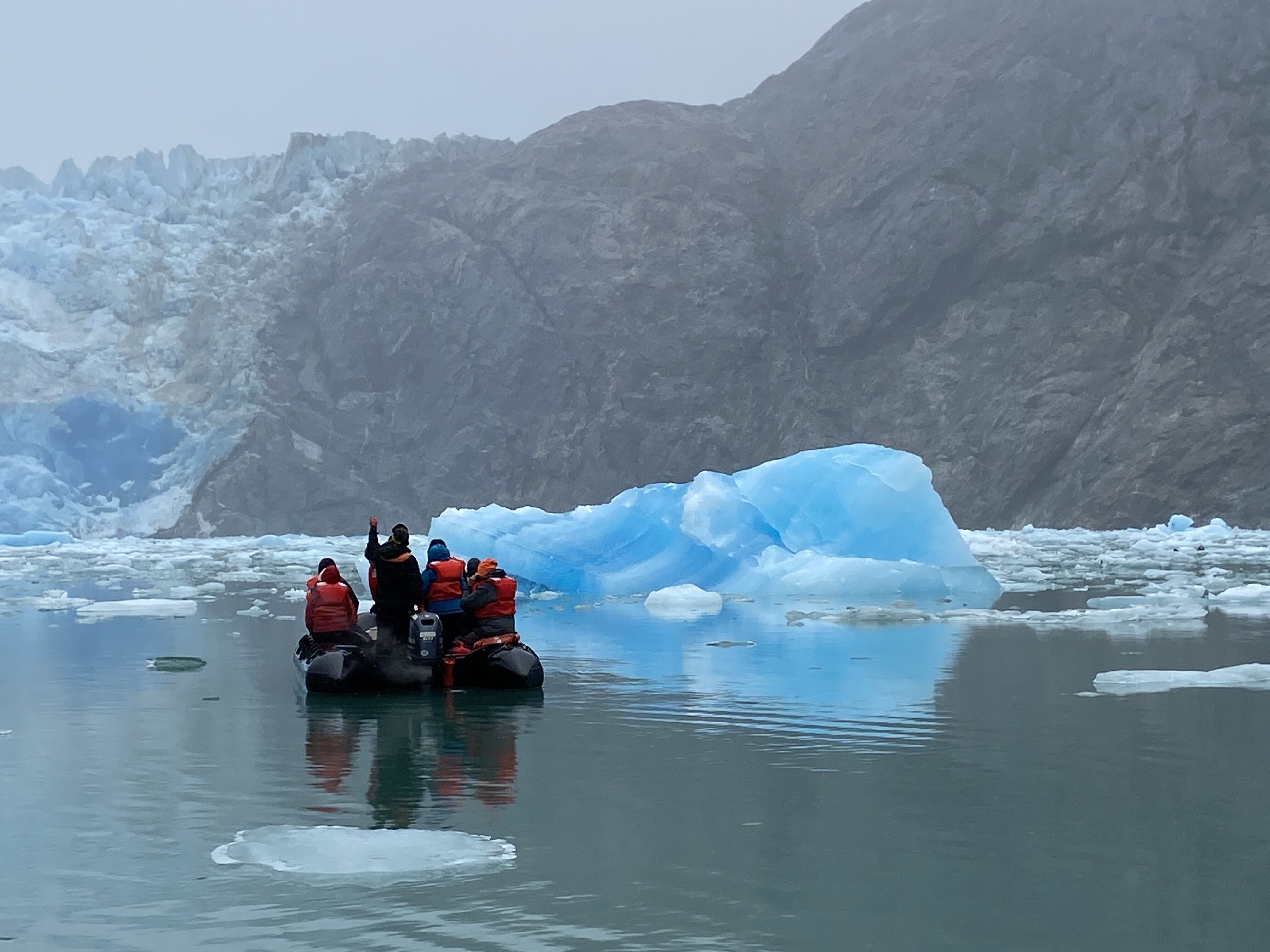 After lunch, we hopped into our Zodiacs and headed into the mouth of the river. We were able to watch these brown bears in their natural habitat. There was a mother and two cubs, and we watched them feast on salmon and walk around the river. This was such an incredible experience. After they walked into the forest, we headed out towards the mouth of the bay in Zodiacs, where we were treated to breaching humpback whales who were bubble-net feeding.